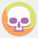 An icon of a skull on a green and orange background. This design looks really effective on these Stickers