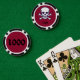 Skull n Bones poker chips are for gamblers who are murder mystery fans, horror fans, bikers, rockers, skull collectors, roleplay gamers, pirate reenactors, cosplayers, and other people who just happen to like skulls. Skull n Bones is Steamy Raimon original art and calligraphy.