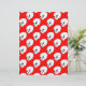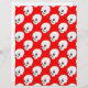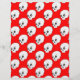 A pattern of white skulls on a red background. Original design with newsprint effect. Black, white and red cartoon image.