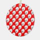 A pattern of white skulls on a red background. Original design with newsprint effect. Black, white and red cartoon image.