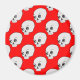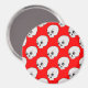 Custom fridge magnets. A pattern of white skulls on a red background. Original design with newsprint effect. Black, white and red cartoon image.