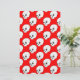 A pattern of white skulls on a red background. Original design with newsprint effect. Black, white and red cartoon image.