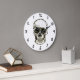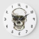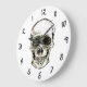 The numbers printed on the clock-face are in reverse! This very confusing clock face features a hand-drawn ink sketch of a human skull enhanced with a touch of digital art effects.