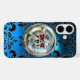 SKULL RIDERS BLACK AQUA BLUE DAMASK GEM Sapphire Case-Mate iPhone Case