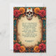 Summon your skeleton crew with Skull & Scrolls, the Día de los Muertos fiesta invitation that’s equal parts elegant and electrifying. With a parchment-style centre framed by fiery florals and a fabulously adorned sugar skull, this design sets the tone for a night of storytelling, snacking, and serious costume swagger.