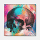 Altered art piece of an anatomical sketch of a skull in front of a colorful vintage inspired background of my design.