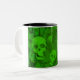 Beware of the skull spectres. When the ghostly phantom skulls appear from the swirling mist you'd better run... before it's too late! Mug with a green and black customizable design for you to add your own images, text, and ideas. Original artwork created using digital techniques by Jess Perry.