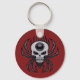Vector cartoon illustration of a pointy clawed spiny orb-weaver spider with a mean skull design on his back.
