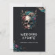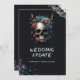 Get ready to rock your wedding with this tattoo themed gothic wedding update or wedding postponement card! This edgy and wedding update card is perfect for couples need to inform their guests about a wedding change of plans. The black and white design features intricate skull, roses, flowers, and calligraphy script writings that exude a sense of dark romance. Get ready to make a statement with these wedding announcement cards.