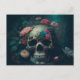 Nice postcard with skull and decorative rose flowers motif. Dark Art in postcard format. Choose from various paper qualities. A postcard with a light vintage touch in pastel colors and beautiful colors around.