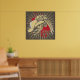 Skull with hat and wing on rays custom poster, featuring a cool skull with hat and wing in dirty yellow and taupe on grunge background.