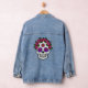 This denim jacket features a floral sugar skull with roses illustration. Perfect for edgy skull and Halloween lovers for spooky season or any time!