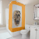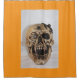A shot of a Skull with a Scorpion on it closeup on a Shower Curtain.
