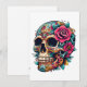 Skull with Tattoos and flowers, vibrant colours, solid background, centred