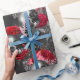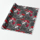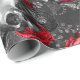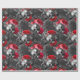 Skulls and Red Flowers on Grey Wrapping Paper
