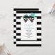 Skull couple and black and white stripes aqua Halloween wedding invitation. A fun black skull couple with an aqua blue bow and hat paired with an elegant black and white striped pattern border are the elements of this modern invitation.