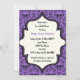 Skulls damask purple black pattern Halloween wedding bridal shower invitation. This formal, elegant design features a damask floral and skull pattern and an ivory frame in the centre. Classic, yet contemporary design with two fonts: a vintage and a cool one. Elegantly spooky design, perfect for Gothic or Halloween fall weddings.