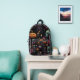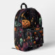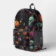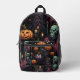 A funky skulls and pumpkin Patterned Backpack. A great gothic spooky design that features orange pumpkins, blue skulls and large candles all on a black and purple background. A great way to add a stylish splash of moody goth to your backpack. Add an initial for a monogrammed gift.