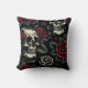 Skulls & Red Roses Gothic Floral Throw Pillow