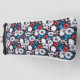 Human skulls are surrounded by beautiful red and white flowers, with blue foliage. Awesome Goth design!