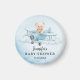 These adorable baby shower favour magnets feature a sweet watercolor teddy bear pilot flying a blue airplane through dreamy clouds. A charming keepsake that guests will love to take home and display, this customizable magnet allows you to add the mom-to-be’s name and shower date. Perfect for a baby boy or gender-neutral celebration, these magnets make thoughtful baby shower favours that combine practicality with a whimsical touch
