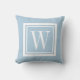 Sky Blue and White Classic Square Monogram Outdoor Pillow