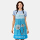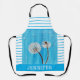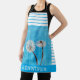 This white and sky blue striped floral design all over print Apron is bright and cheery. Donning it will make your day brighter and your cooking tastier. The design consists of two white flowers on a blue background surrounded by white petals. It will make you smile and be happy.