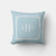 Sky Blue and White Notched Corner Custom Monogram Throw Pillow