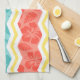 Sky Blue, Coral Pink, and Yellow Tropical Pattern Kitchen Towel