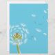 Special blue and white dandelion flower with an art design of a wild Dandelion flower blowing in the wind against a stylish sky blue colour background. Whimsical and cute.