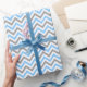 Sky Blue, Dk Grey Wht Large Chevron ZigZag Pattern Wrapping Paper