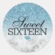 Sky Blue Faux Glitter/Marble Sweet 16 Classic Round Sticker