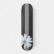 This pretty feminine skateboard features a large turquoise and white daisy on a black and silver striped background. Street smart, urban, fun and cool! Available in other styles and colour combinations. Want something unique just for you? Contact me and I will design something specifically for you at no extra charge. info@creacious.com