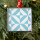 Sky Blue Geometric Deco Cube Pattern Metal Ornament