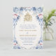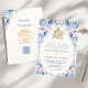 Sky Blue Gold Floral Leaves Muslim Wedding qr code Invitation