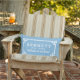 Stylish lumbar pillow design features a white Greek key geometric border frame design and monogram that can be personalized with a married or family last name, year established date (could be year married or year first child was born). Customize the sky / powder blue background to coordinate with your outdoor decor.