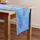 Beautiful table runner in beautiful shades of blue with symbols of different religions and a labyrinth in the background. Suitable to use as an interfaith altar covering.