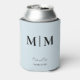Wedding Can Cooler. Monogram. New Last Name. Couple Names and Date. Sky Blue. Black Text.