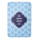 Sky Blue Moroccan #5 Navy Blue 3 Initial Monogram Bath Mat