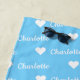 Sky Blue Personalized Name Pattern Beach Towel with Heart Design Summer Beach Bath Towel.