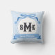 Sky Blue Reverse Greek Key Bow Monogram Throw Pillow