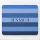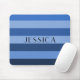 Mouse pad with a sky blue monochrome striped pattern with personalized name print in the centre. Type your name in the template field to personalize. Matching computing accessories available.