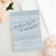 Elegant and modern watercolor rehearsal dinner invitation features a watercolor wash background in tone on tone shades of pastel sky blue, accented with chic calligraphy and serif lettering in dusty slate grey blue. Coordinating items available in our Chiffon collection.