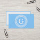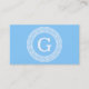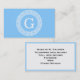 Sky Blue Wht Greek Key Rnd Frame Initial Monogram Business Card