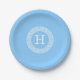 Sky Blue Wht Greek Key Rnd Frame Initial Monogram Paper Plate
