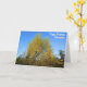 Cette carte d'anniversaire présente une scène automnale vibrante d'arbres ensoleillés ornés de feuilles jaunes et verts dressés contre un ciel bleu impeccable. Faites-le spécial avec des options pour personnaliser l'avant, l'intérieur et l'arrière.
