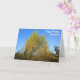 This birthday card presents a vibrant autumn scene of sunlit trees adorned with yellow and green leaves set against a flawless blue sky. Make it special with options to personalize the front, inside, and back.