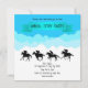 Celebrate the excitement of the annual derby with this whimsical sky-themed invitation. Featuring a cheerful bright blue background with puffy clouds and a teal banner, this design includes a line of racing horse and jockey silhouettes galloping across the horizon. Perfect for hosting a lighthearted, "mint juleps and hats" event, the square card also includes a charming white horseshoe pattern on the reverse side. Fully customizable for your unique details, this invitation promises a high-flying celebration.