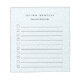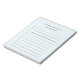 Chic personalized to-do notepad features a leopard print background in muted sky blue and white. Personalize with a name and an additional line of custom text (shown with "important things to do") in modern black lettering. This lined checklist notepad in a subtle pastel blue animal print pattern makes it easy to keep track of your important tasks in style.
