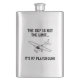 The product is a good size and came exactly as it was pictured. The lid is not attached to the flask, which could be dangerous on drunken nights... The print came out surprisingly well and looks very sharp. Would definitely recommend.